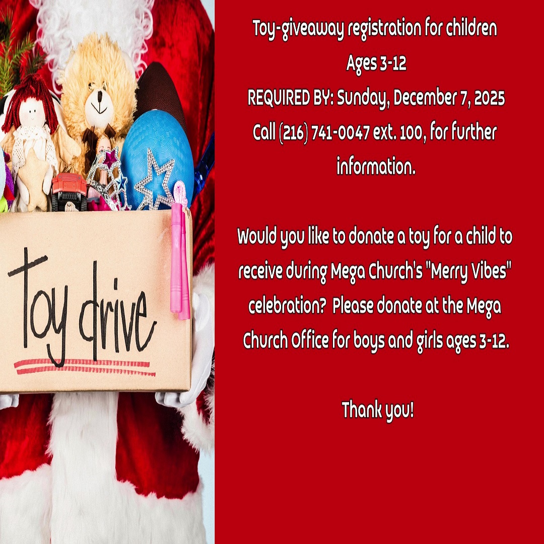 Donate toys at the Mega Church office for boys & girls ages 3-12.